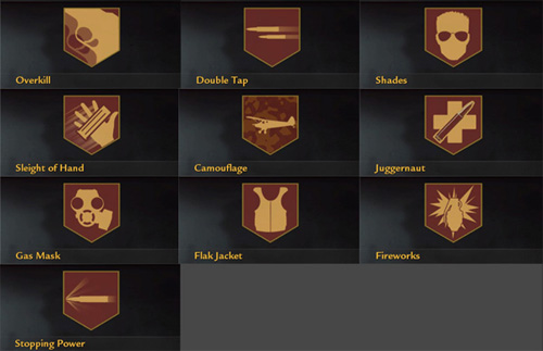 In Call of Duty: World at War sind insgesamt 33 Perks enthalten, davon sind fünf Perks für