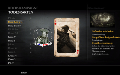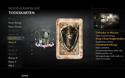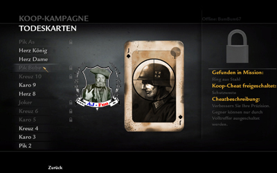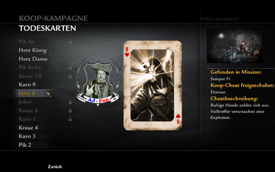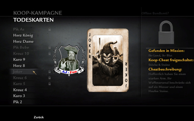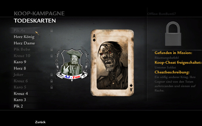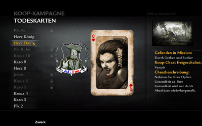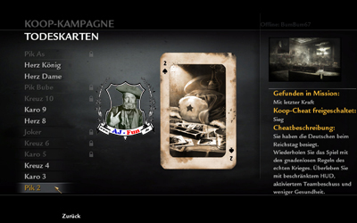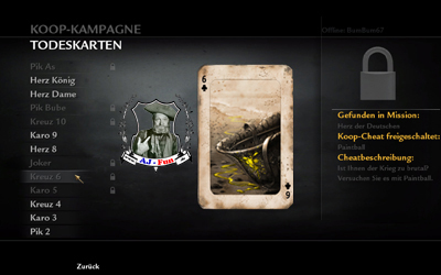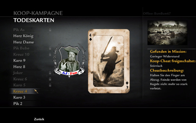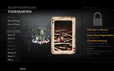 Die Todeskarten sind cheats, welche man in einem Privaten Koop-Spiel einschalten kann.